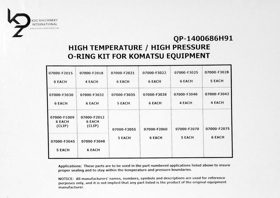 QP-1400686H91 HIGH TEMPERATURE O-RING KIT FOR KOMATSU EQUIPMENT